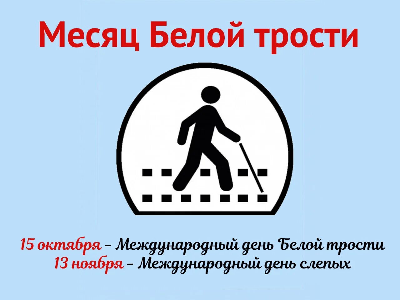 Ежегодно, с 15 октября – «Международного дня белой трости» и по 13 ноября – «Международного дня слепых» в России проходит Месячник «Белой трости». В этот период проходит огромное количество различных мероприятий для инвалидов по зрению и для всех тех, кто находится в прямом и тесном контакте с ними.